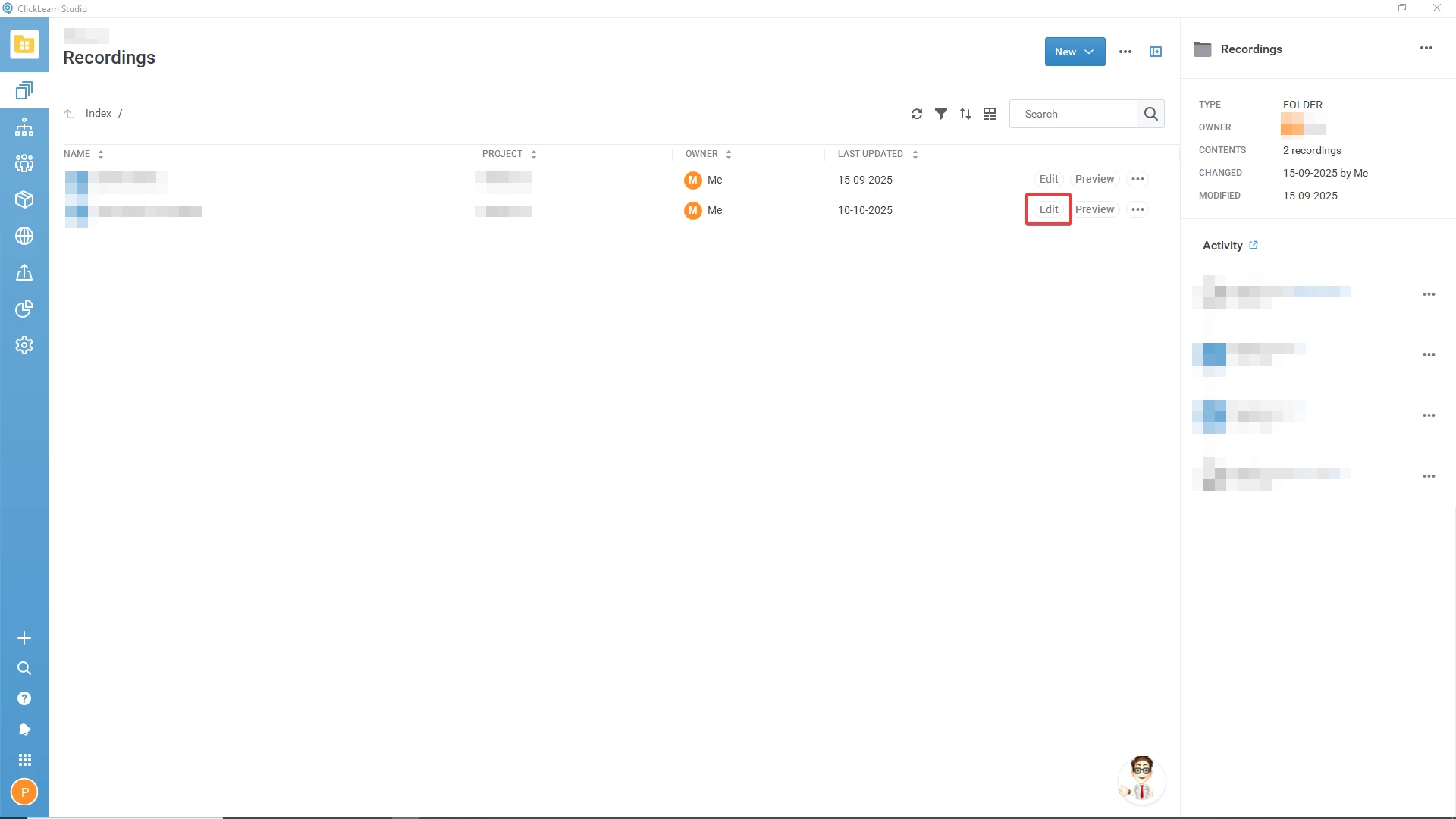 After you’ve recorded your steps, it’s time to refine them in the ClickLearn Editor. To access the editor, open your project and locate your recording. In each recording line, you’ll see the Edit button, click on it or double-click the recording to open it. You can also right-click the recording and select “Edit” from the context menu.