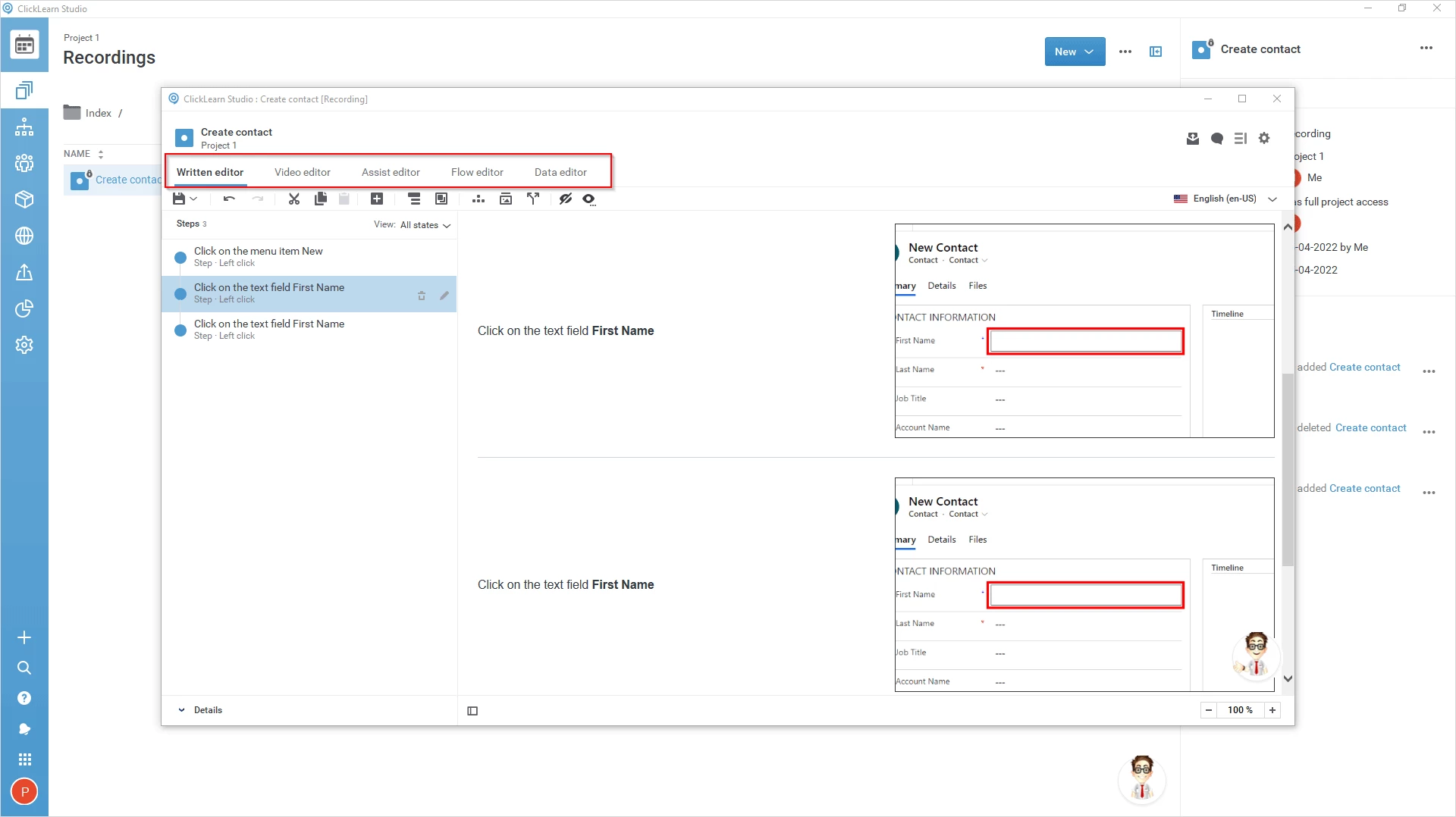 Whether you’re recording a simple form submission or a complex multi-system workflow, the ClickLearn Recorder helps you create learning content that’s easy to understand and ready for reuse.