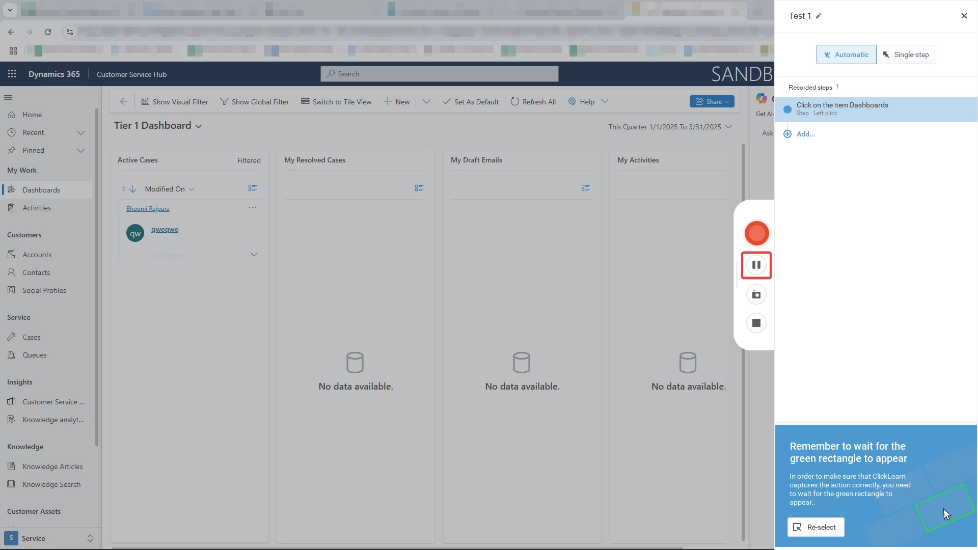 - Always wait for the Green Rectangle. Once it appears, count “1–2” before clicking to ensure the action is properly captured. If you don’t wait, your step might not be recorded, and you’ll have to redo it.