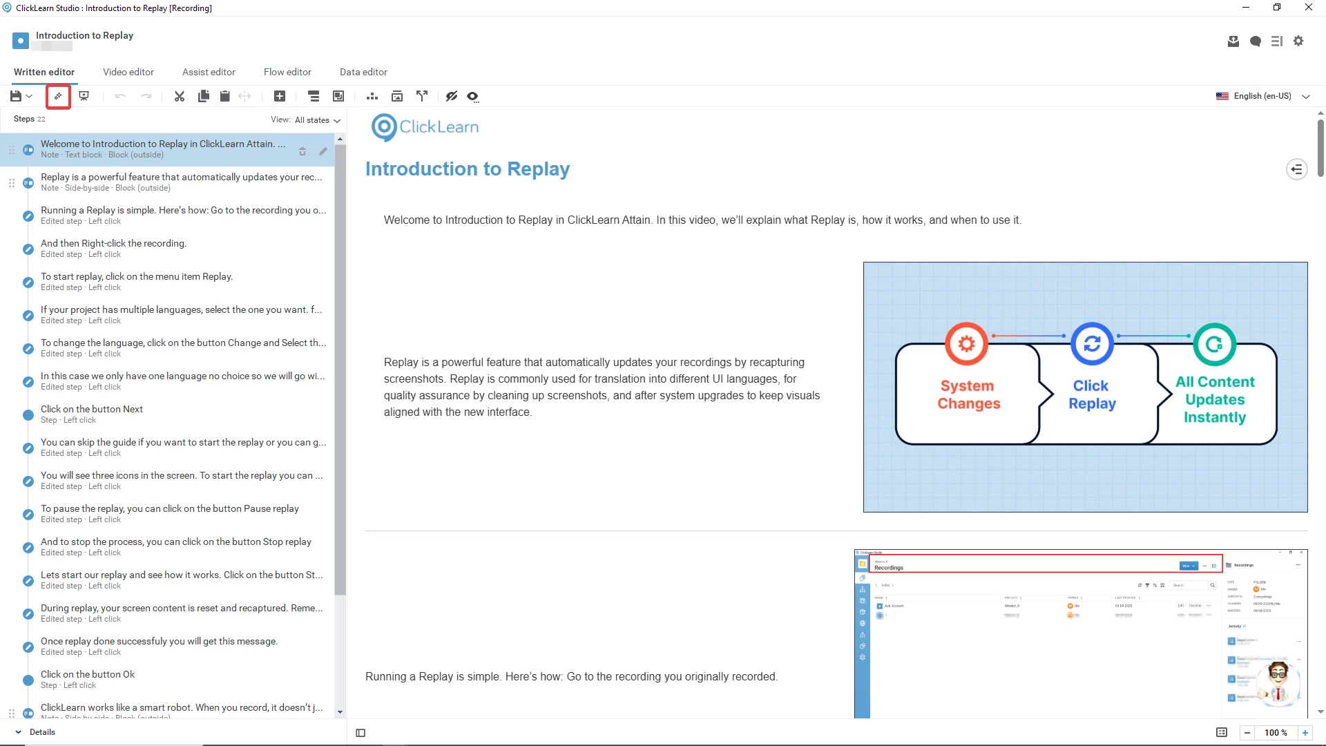 ClickLearn Attain provides multiple editors to help you customize content for various output formats: