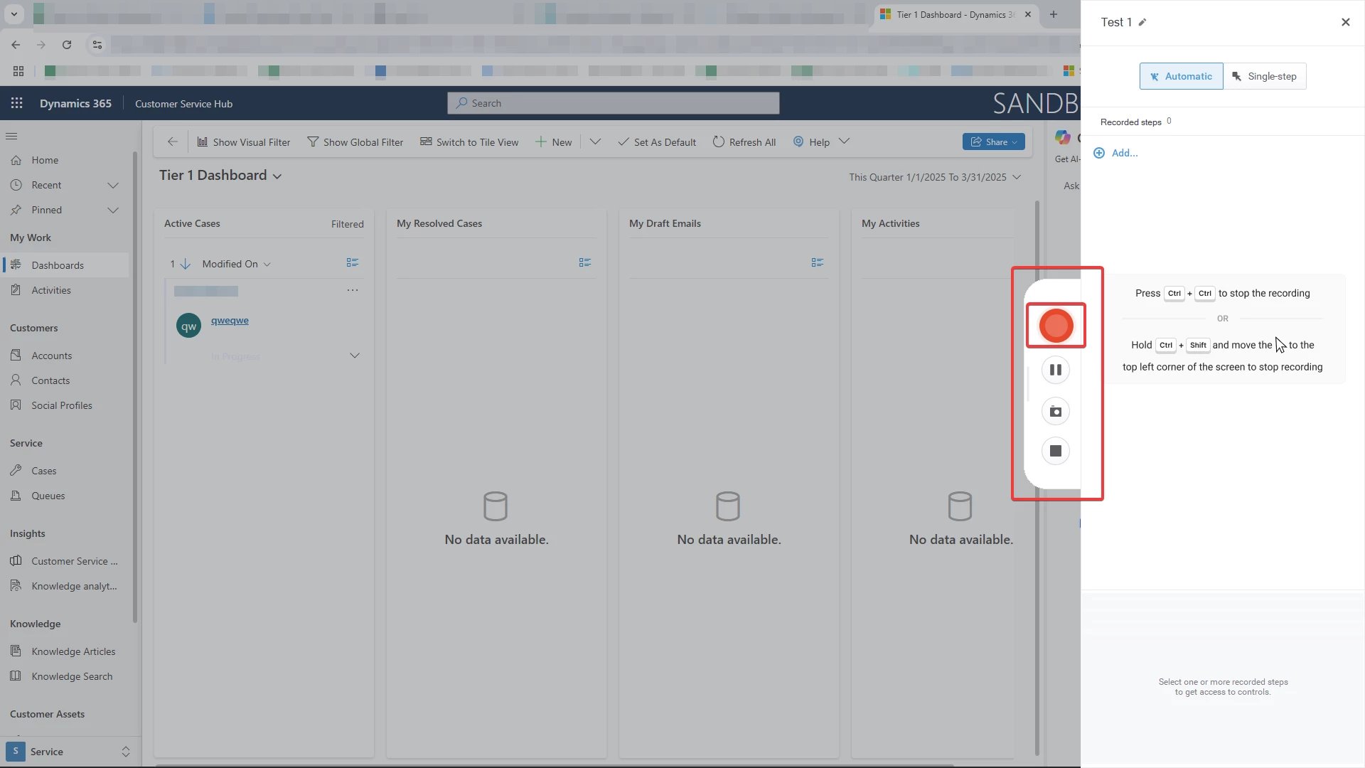 If needed, pause the recording using the sidebar to fix or prepare steps.