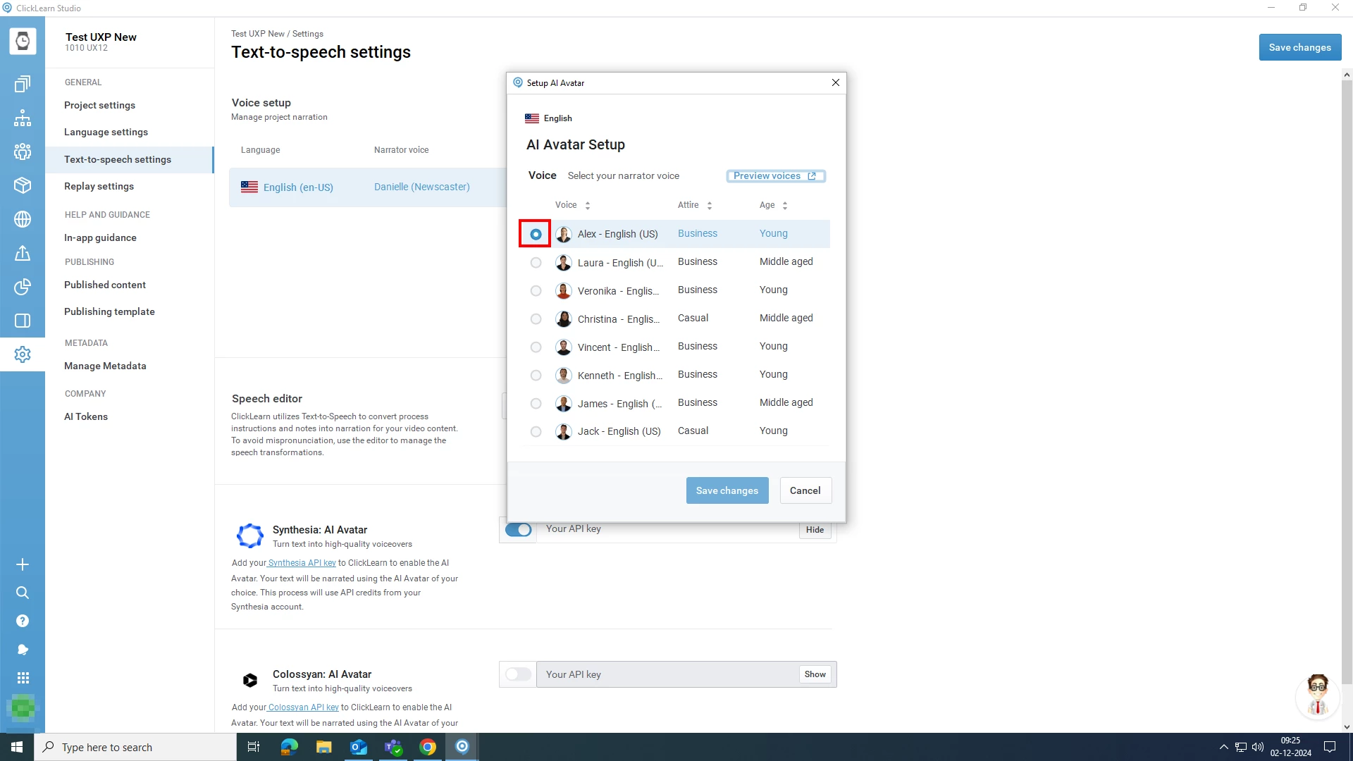 Click on the button Settings and click on the button Text-to-speech settings and retrieve your API key and add it to your ClickLearn settings.