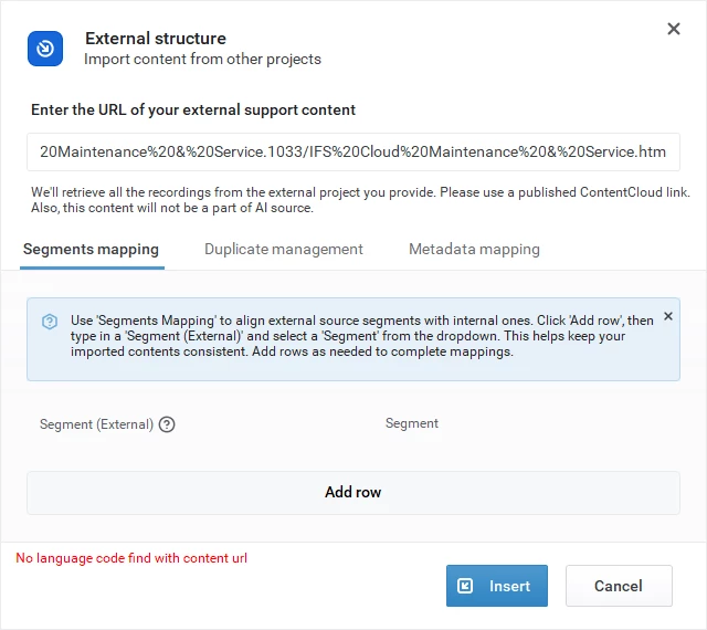 I am successful in defining many different URLs as external content and everything works fine.